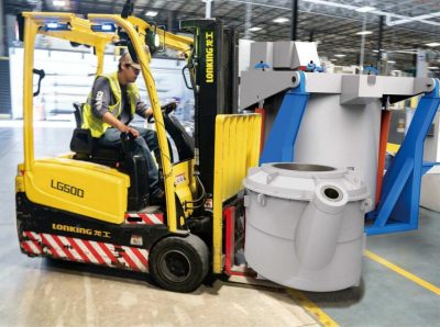 2016年7月,炉子运到了泊头。XBH-350倾倒式电坩埚炉,坩埚容量350公斤,PID控温,精度±2度。