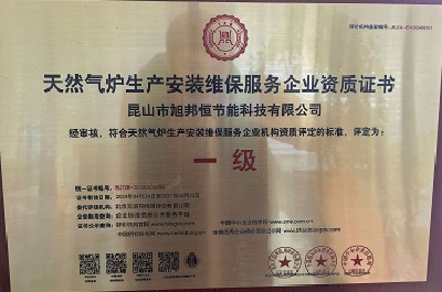因为我们已经拿到了天然气炉生产安装维保服务企业一级资质证书。